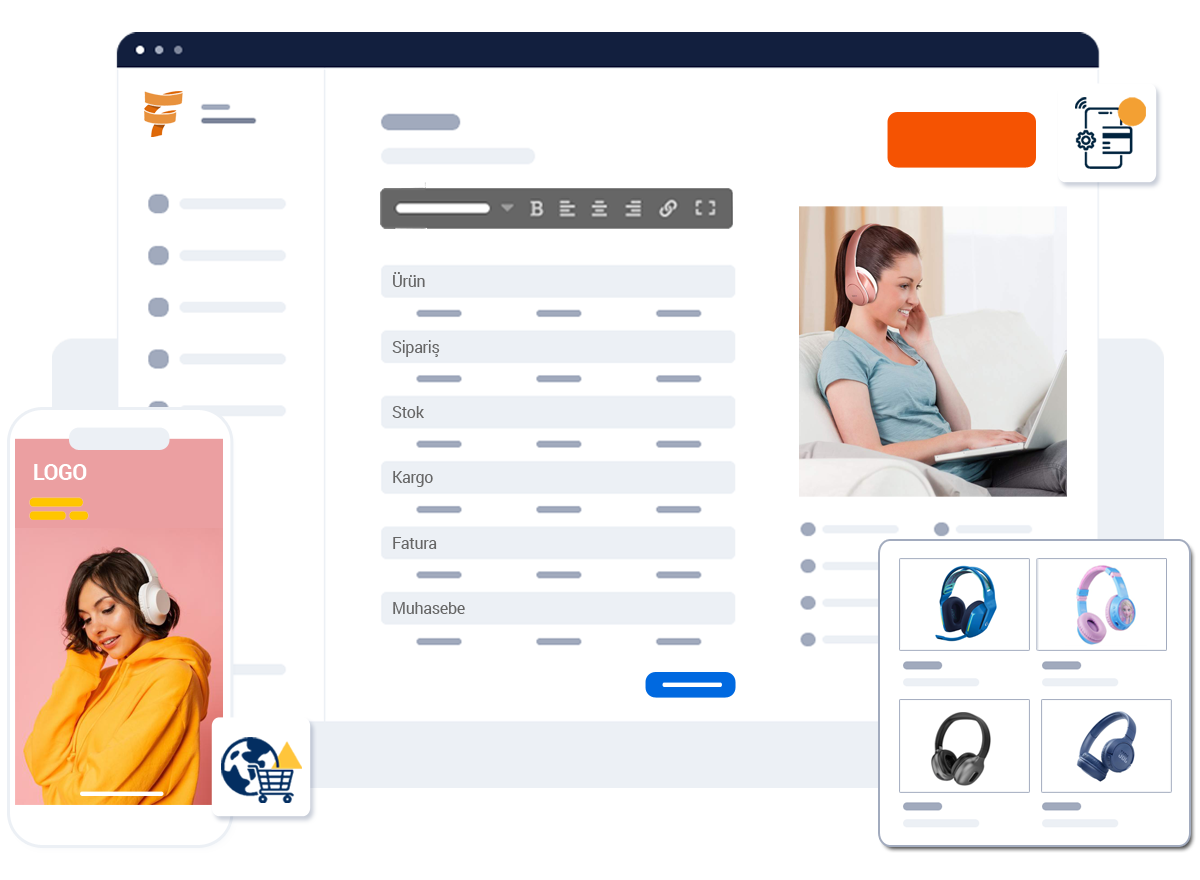 Tüm e-ticaret faaliyetlerinizi tek panelden ve entegre bir biçimde hızlıca yöneterek operasyonel verimliliğinizi artırın, hedeflerinize hızla ulaşın.